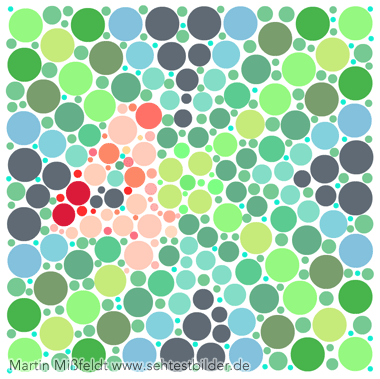 Das folgende Bild ist auch für Menschen mit eine eher geringen Rot-Grün-Schwäche schwer zu erkennen: